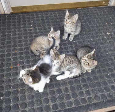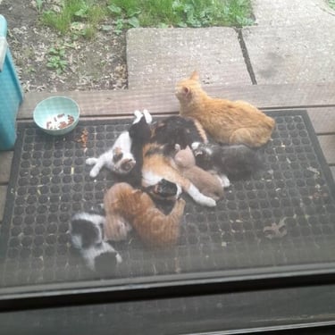 This client reached out to the vet office and reported more and more pregnant cats were showing up at her home. They were finding kittens in places kittens shouldn't be such as drainage ditches. The client has provided an environment where the colony can remain safe and as a colony but required assistance with spay/neuter services to get the colony under control. That is when we stepped up and offered the client and the colony help.