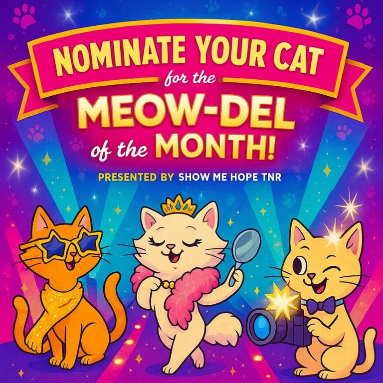 ✨ Prizes: The top 3 winners will each receive a gift card AND a spotlight in our 2026 Show Me Hope TNR Cat Calendar! The Top 12 will be featured throughout our Calendar.